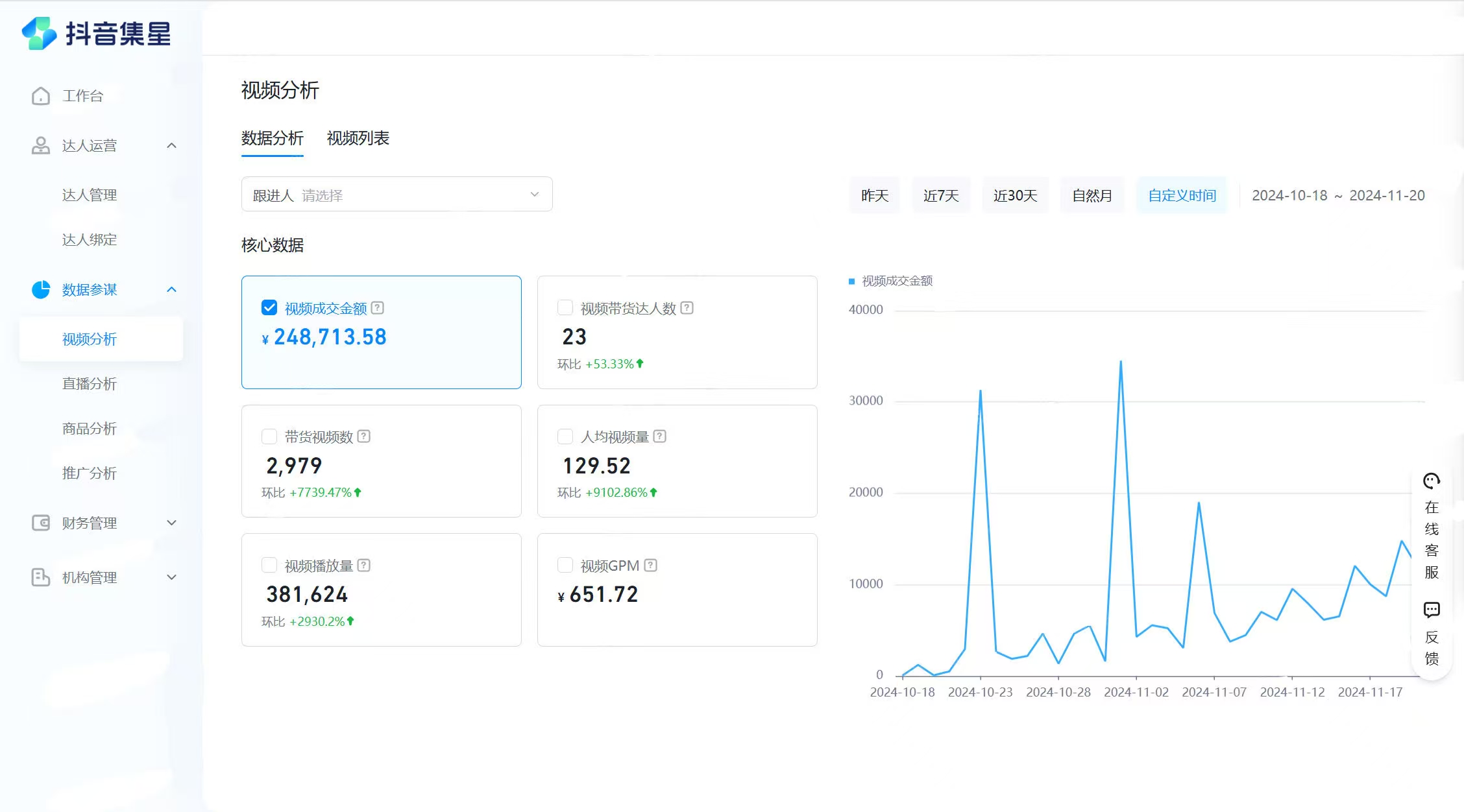 截至11月15日,全员直播成交金额突破30万元,迈入直播带货新里程。