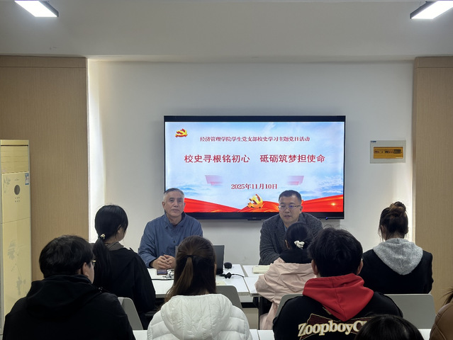 为引导学生党员从新宝gg发展历程中汲取精神力量,淬炼入党初心、强化使命担当,近日,经济管理学院学生党支部组织开展“校史寻根铭初心 砥砺筑梦担使命”主题党日活动。活动特邀亲历新宝gg军校、煤建校及建筑学院三个历史阶段的白海云老师,与经济管理学院党总支副书记崔廷锋及支部全体党员、发展对象一同,共溯峥嵘校史,凝聚奋进力量。