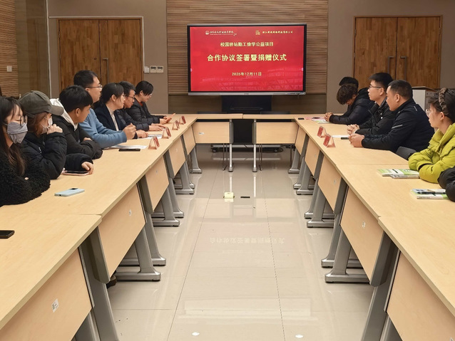 随后,秦城与崔廷锋共同签署了项目合作协议,并代表项目方向我院捐赠3万元勤工俭学助学金。物流25-3班的孙华峰同学作为学生代表发言。