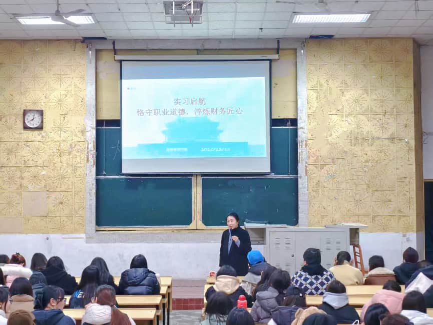 单雅迪以“实习启航:恪守职业道德,淬炼财务匠心”为题开展专题讲座,结合财务行业特点,深入解读职业道德准则,倡导同学们在实习中锤炼工匠精神,树立专业职业素养。
